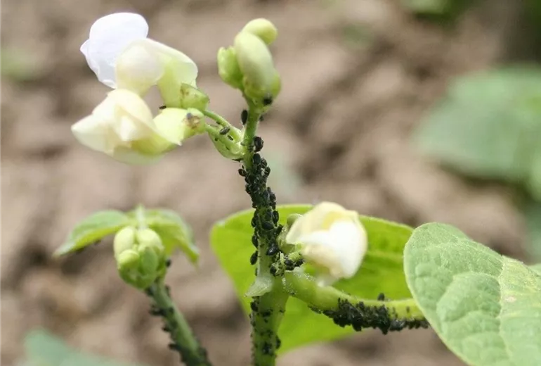 Da Blattläuse sich an den behaarten Blättern von Busch- und Stangenbohnen nicht so wohl fühlen, spielen sie normalerweise nur in sehr warmen, trockenen Sommern eine gewisse Rolle. An Sau- oder Puffbohnen kommen sie jedoch regelmäßig vor.