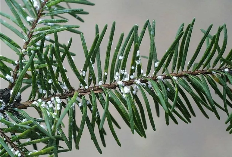An Douglasie (Pseudotsuga), tritt die Douglasienwolllaus (Gilletteella cooleyi) häufiger auf.