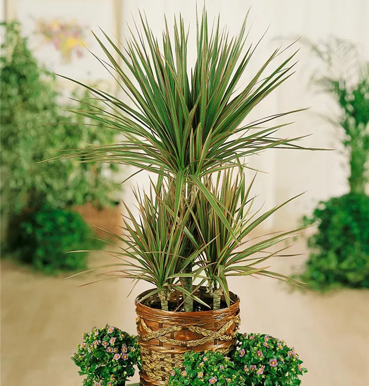 Der Drachenbaum 'Bicolor' (Dracaena marginata) zählt zu den pflegeleichten Pflanzen, die sehr dekorative , dunkelgrüne Blätter besitzt. Sie sind lineal. Bevorzugt wird ein sonniger bis halbschattiger Standort.