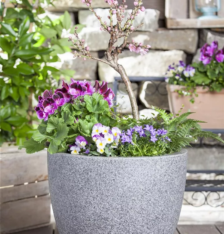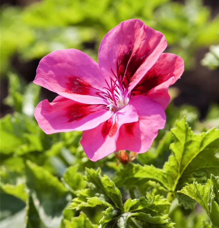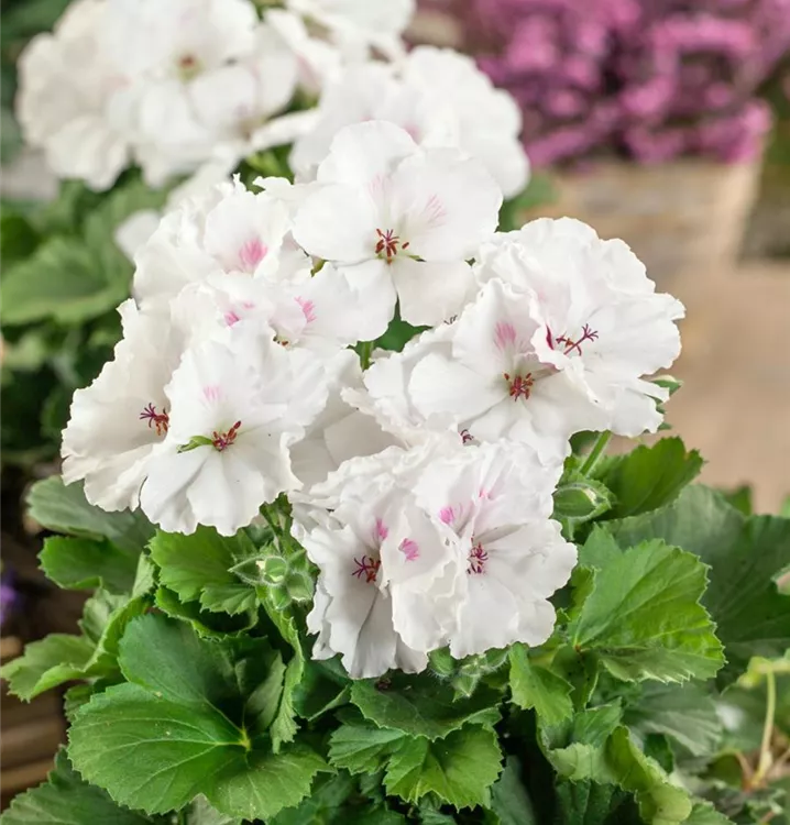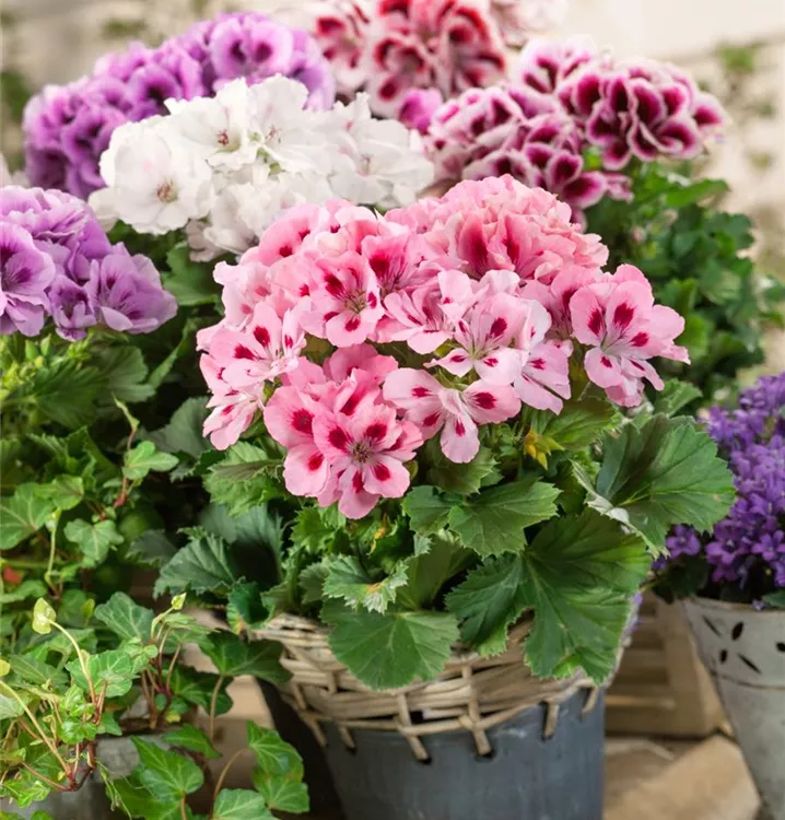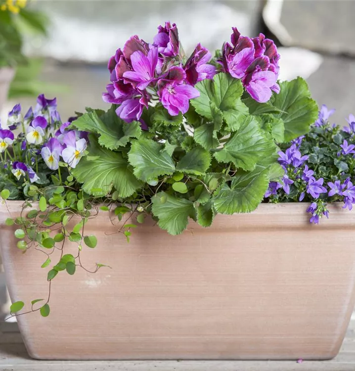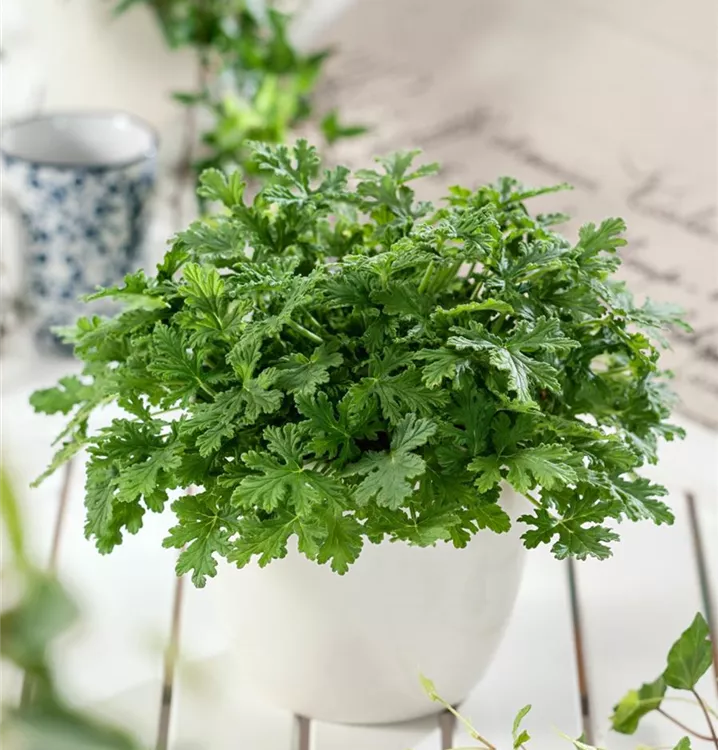 Die Zitronen-Geranie 'Citriodorum' (Pelargonium) ist eine beliebte Pflanze für den Balkon. Die unzähligen Blüten erscheinen, je nach Sorte, in verschiedenen Farben die ganze Saison hindurch. Ein sonniger bis halbschattiger Standort und ein durchlässiges Substrat werden bevorzugt.