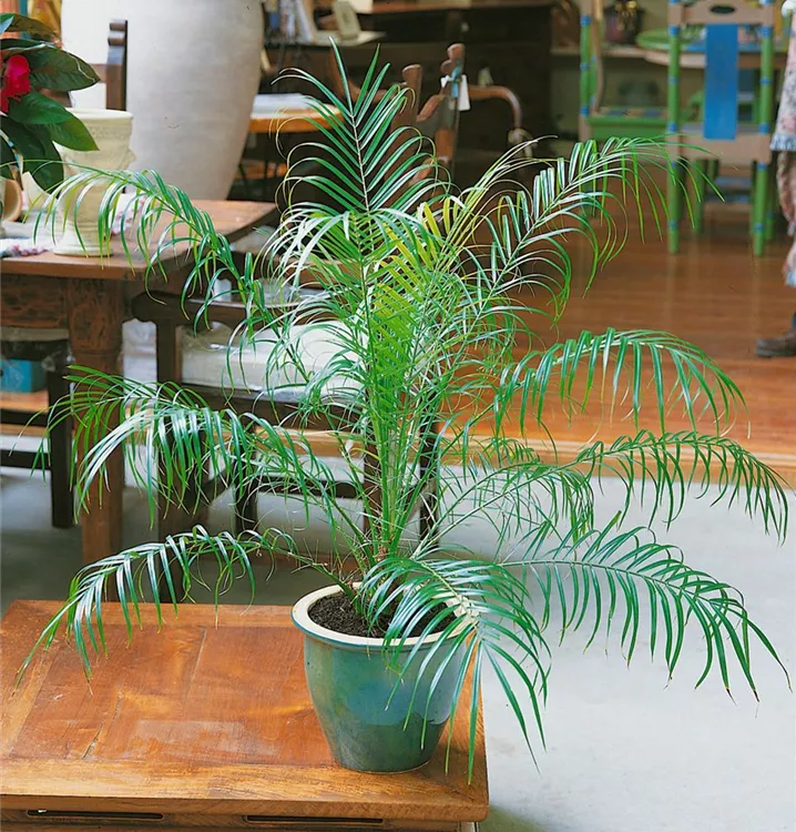 Die Blätter der Zwerg-Dattelpalme sind hellgrün.