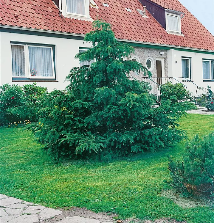 Die Adlerschwingen-Eibe 'Dovastoniana' (Taxus baccata) ist ein Großstrauch, welcher aufrecht, überhängend wächst und gewöhnlich eine Höhe von ca. 8 m und eine Breite von ca. 7 m erreicht. Ihre nadelförmigen Blätter haben eine dunkelgrüne Färbung. Dekorative rote Zapfen zieren Taxus baccata 'Dovastoniana' ab September. Dieses Gehölz ist gut frostverträglich. Sie bevorzugt durchlässigen, kalkhaltigen, nährstoffreichen Boden in sonniger bis halbschattiger Lage.
