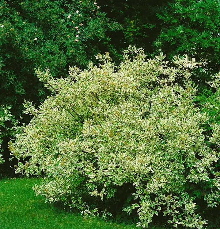Der Weiße Hartriegel (Cornus alba) ist ein aufrechter, breiter Großstrauch mit dekorativen, weißen, runden Früchten. Die Blüten erscheinen je nach Sorte in verschiedenen Farben.