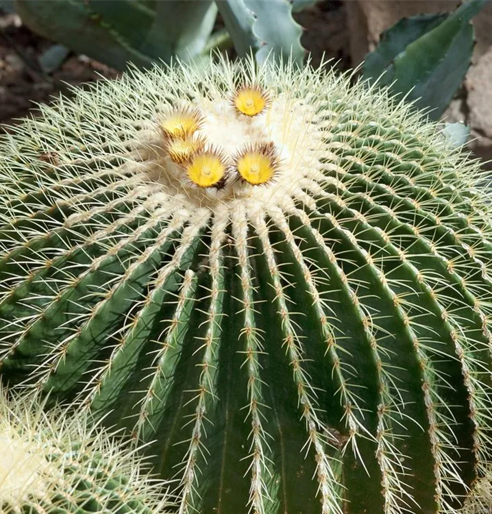 Die Triebe von Echinocactus grusonii sind bedornt.