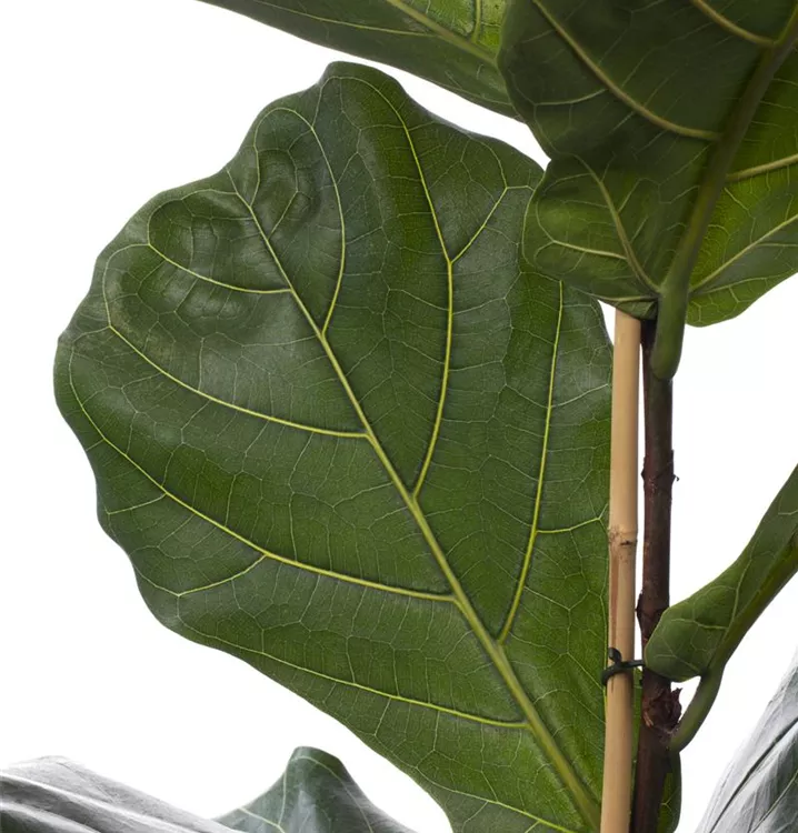 Die immergrünen Blätter der Geigenfeige sind dunkelgrün, eiförmig, glänzend, ledrig. Diese sind etwa 20 - 30 cm groß.