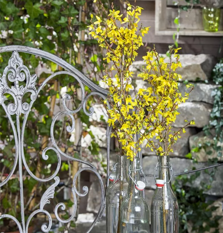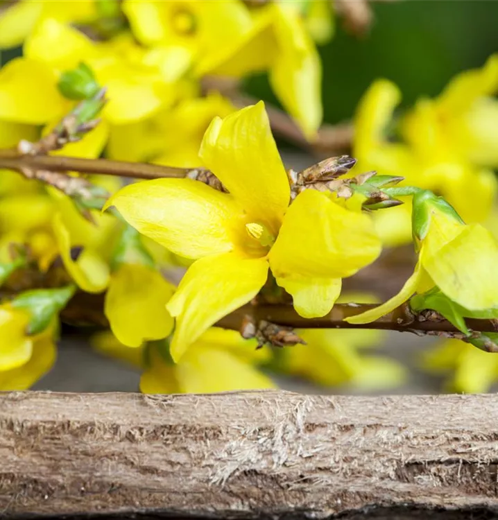 Die gelben Blüten der Forsythie erscheinen in Rispen von März bis Mai.