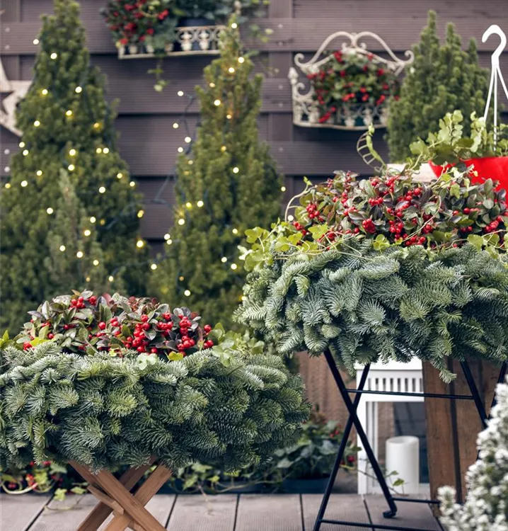 Besonders dekorativ sind die roten, angenehm duftenden, runden Früchte von Gaultheria procumbens. Diese erscheinen ab September. Haften sehr lange.