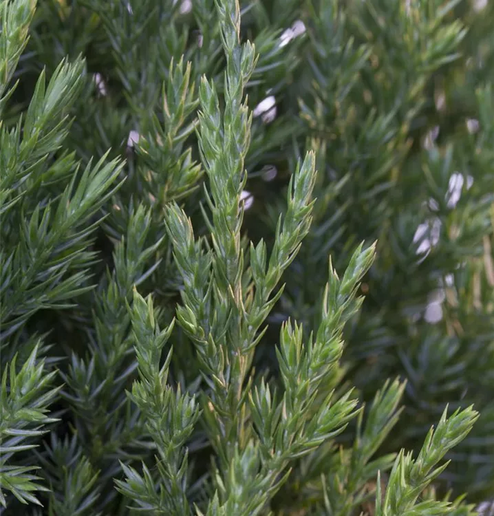 Der Blaue Kegel-Mooswacholder 'Stricta' ist immergrün. Seine Nadeln sind blau-grün.