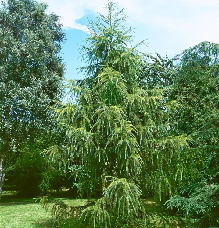 Die Europäische Lärche (Larix decidua) ist ein Großbaum, welcher kegelförmig wächst und gewöhnlich eine Höhe von ca. 35 m und eine Breite von ca. 20 m erreicht. Ihre nadelförmigen Blätter haben eine hellgrüne Färbung. Sie verwandeln sich im Herbst in ein leuchtendes Goldgelb. Dekorative braune Zapfen zieren Larix decidua ab September. Dieses Gehölz ist gut frostverträglich. Sie bevorzugt durchlässigen, nährstoffreichen Boden in sonniger Lage.