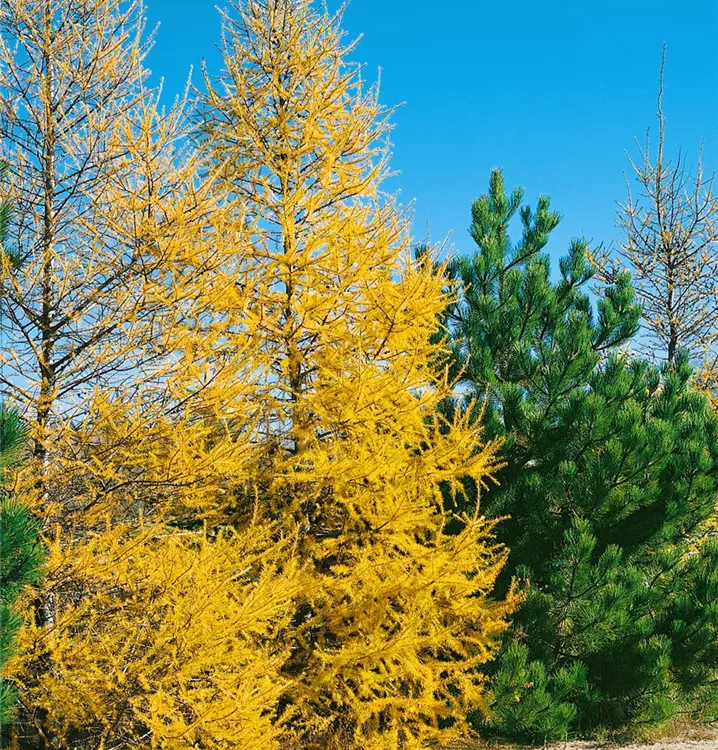 Die Europäische Lärche ist sommergrün. Ihre Nadeln sindhellgrün. Europäische Lärche zeigt sich leuchtend goldgelb im Herbst.