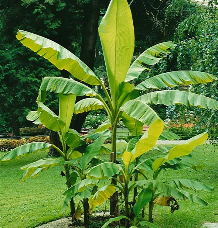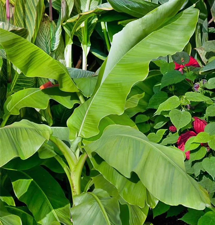 Die immergrünen Blätter der Japanische Faserbanane sind mittelgrün.