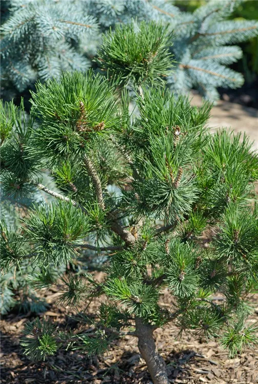 Dreh-Kiefer 'Spaan´s Dwarf' ist ein kegelförmig wachsender, malerischer Baum mit lockerer Krone. Sie erreicht gewöhnlich eine Höhe von 60 - 90 cm und wird ca. 2,5 - 3 m breit.