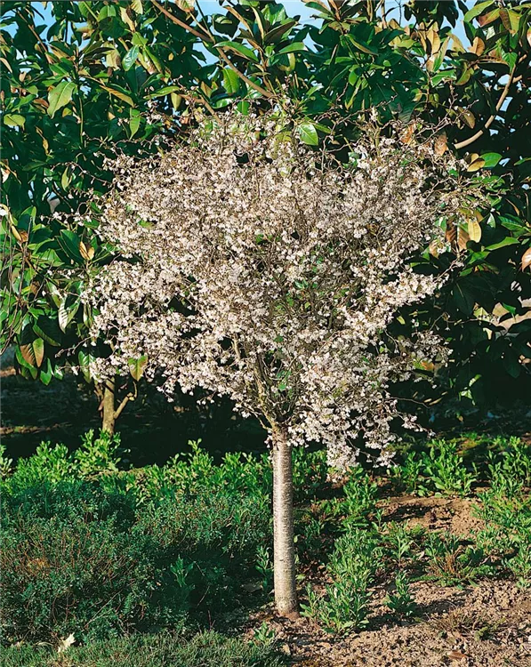 Die weißen Blüten erscheinen von Ende März bis Ende April.