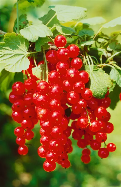 Die Rote Johannisbeere (Ribes rubrum) bildet rote Beeren. Diese sind süß-säuerlich im Geschmack. Für eine ertragreiche Ernte ab Juni schaffen durchlässiger, nährstoffreicher Boden und ein sonniger bis halbschattiger Standort optimale Bedingungen. Auch ihre hellgrünen Blüten sind eine schöne Erscheinung.